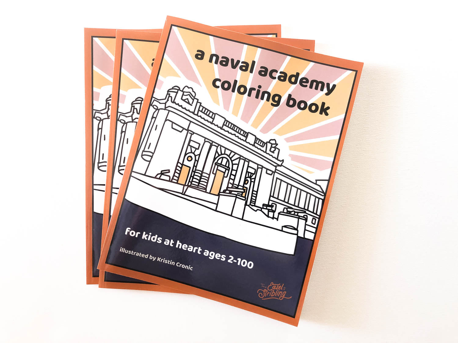 For kids at heart, ages 2 to 100, this Naval Academy coloring book is a joyful way to celebrate Academy life. With 32 single-sided pages, each illustration is packed with details that USNA families, alumni, and friends will recognize and love—without worrying about colors bleeding through.