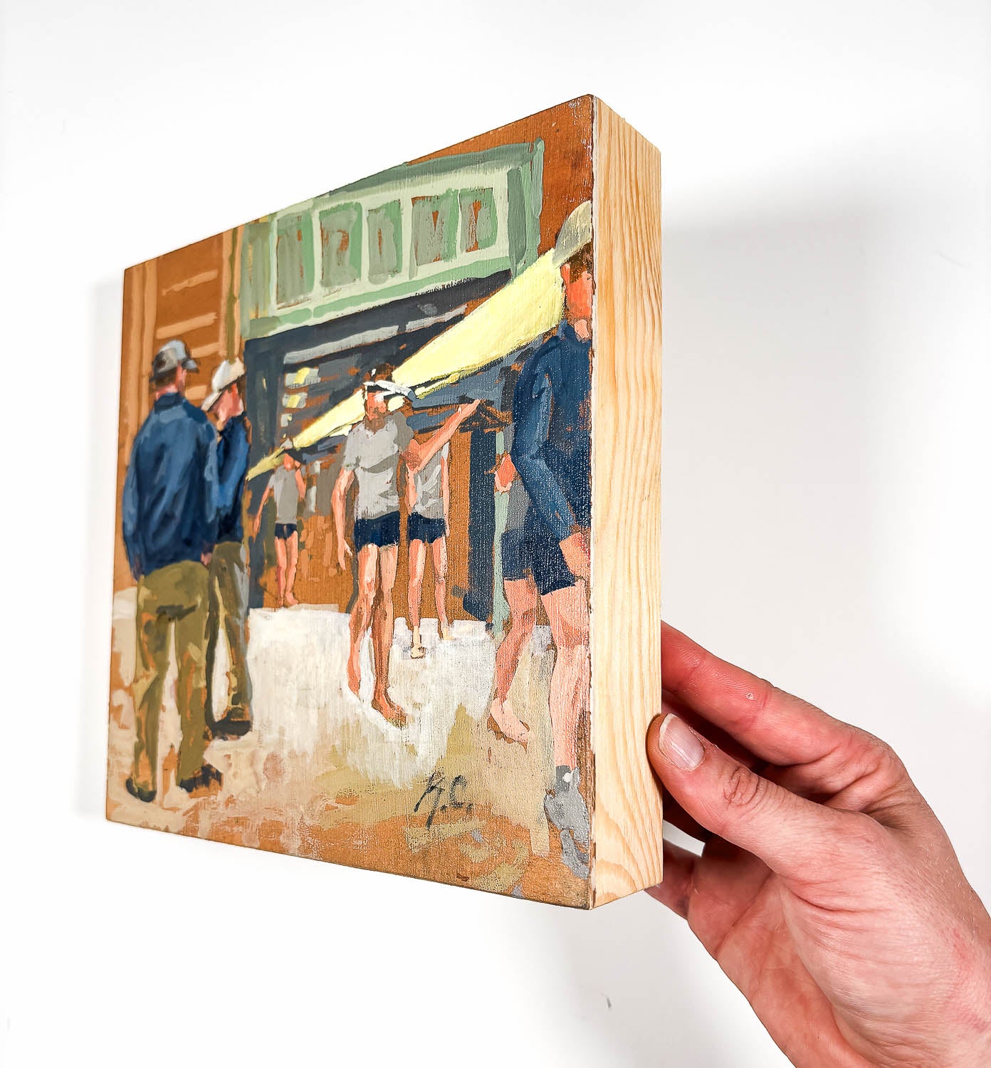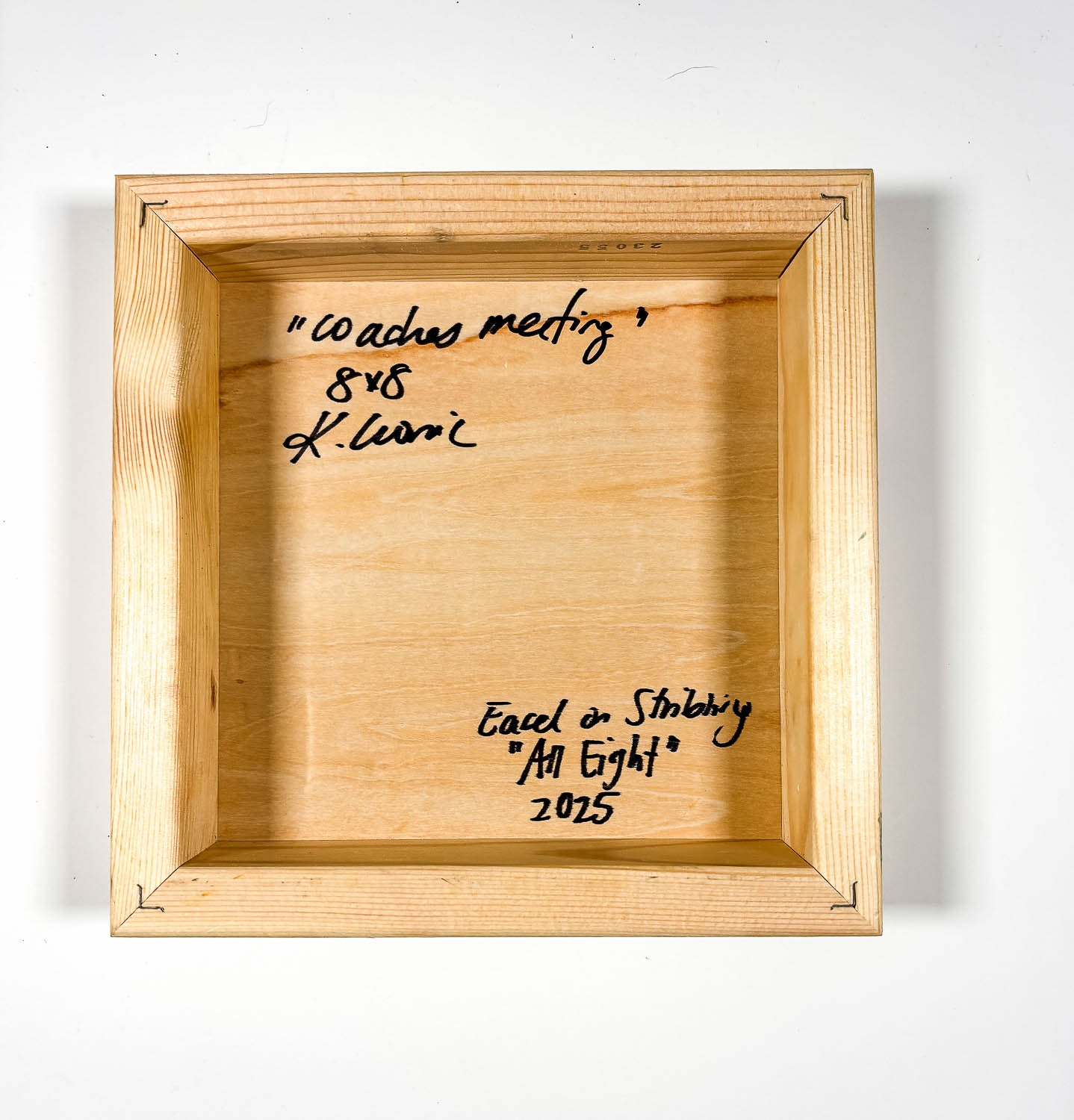 Coaches Meeting | 8"x8" Original Oil and Acrylic on Board