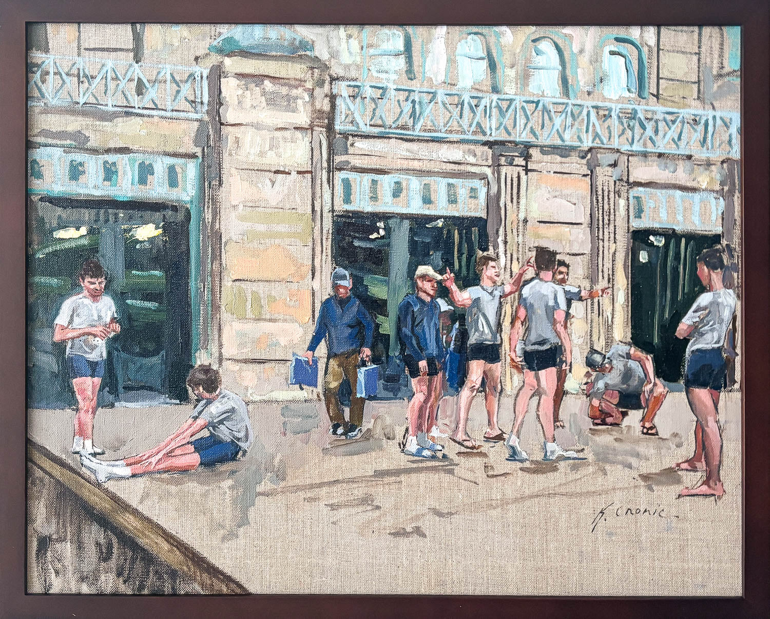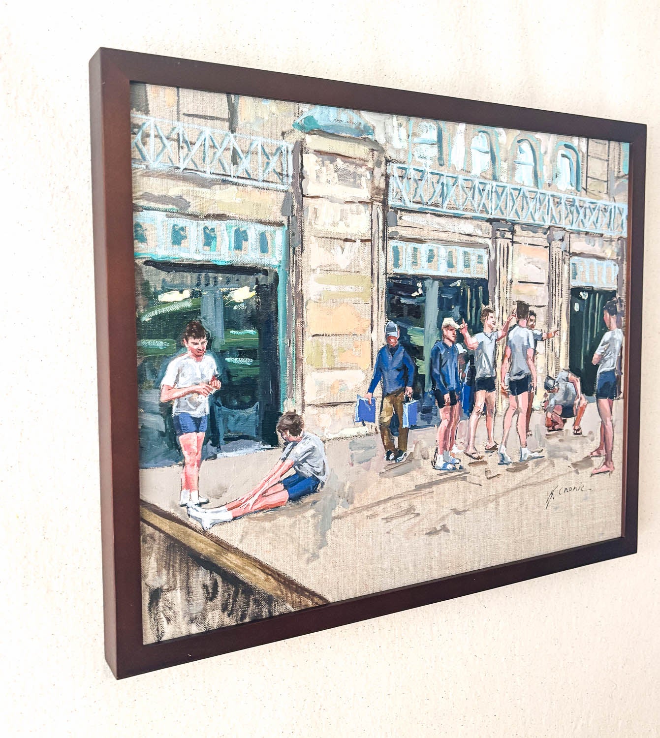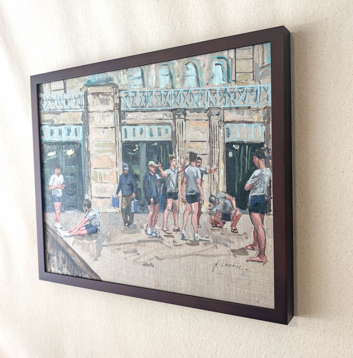 This painting includes a dark brown frame (pictured).