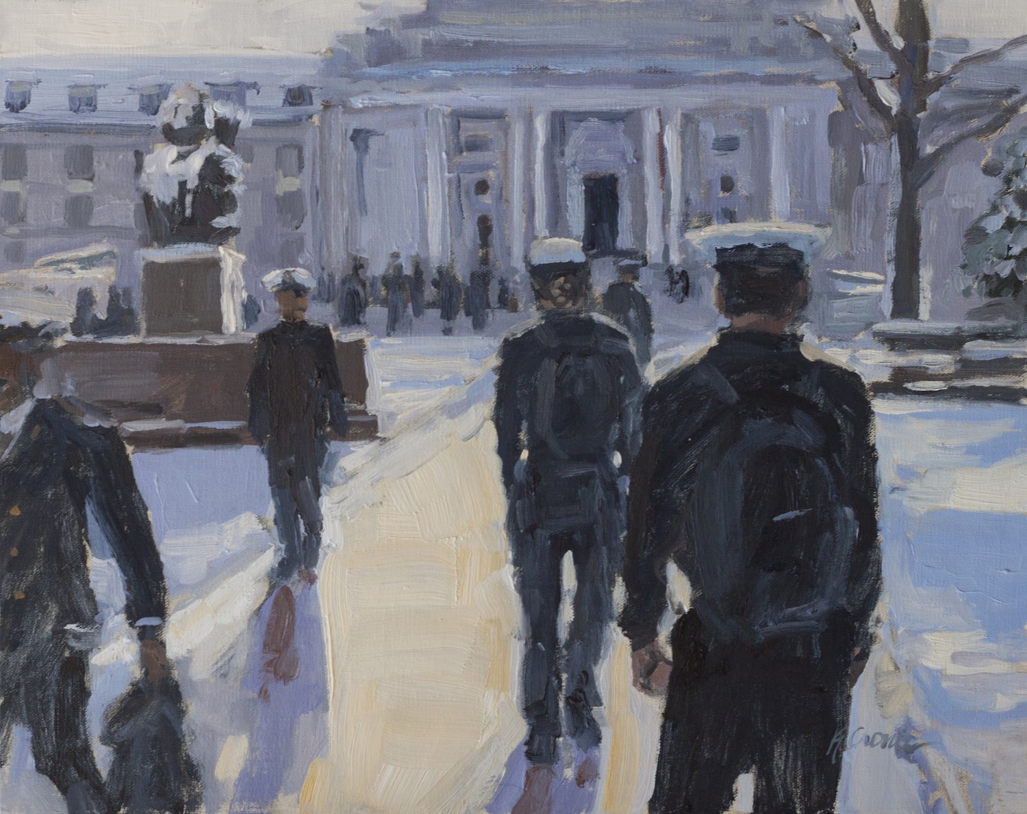 The Dark Ages are a time at the Naval Academy not always welcomed. Following the return from a wonderful time with loved ones during holiday leave, they embody the thickness of studies and military grind with the reprieve of summer still too far away. Events are sparse, visitors are few, and everyone is wearing black, which just adds to the atmosphere. But then… The snow has fallen, the sun shines for just that day- It’s illuminating Stribling as if to promise it will all be worth it, and there is something lovely about today… even if “today” does not contain a cover toss, a Herndon climb, or a ring dance.