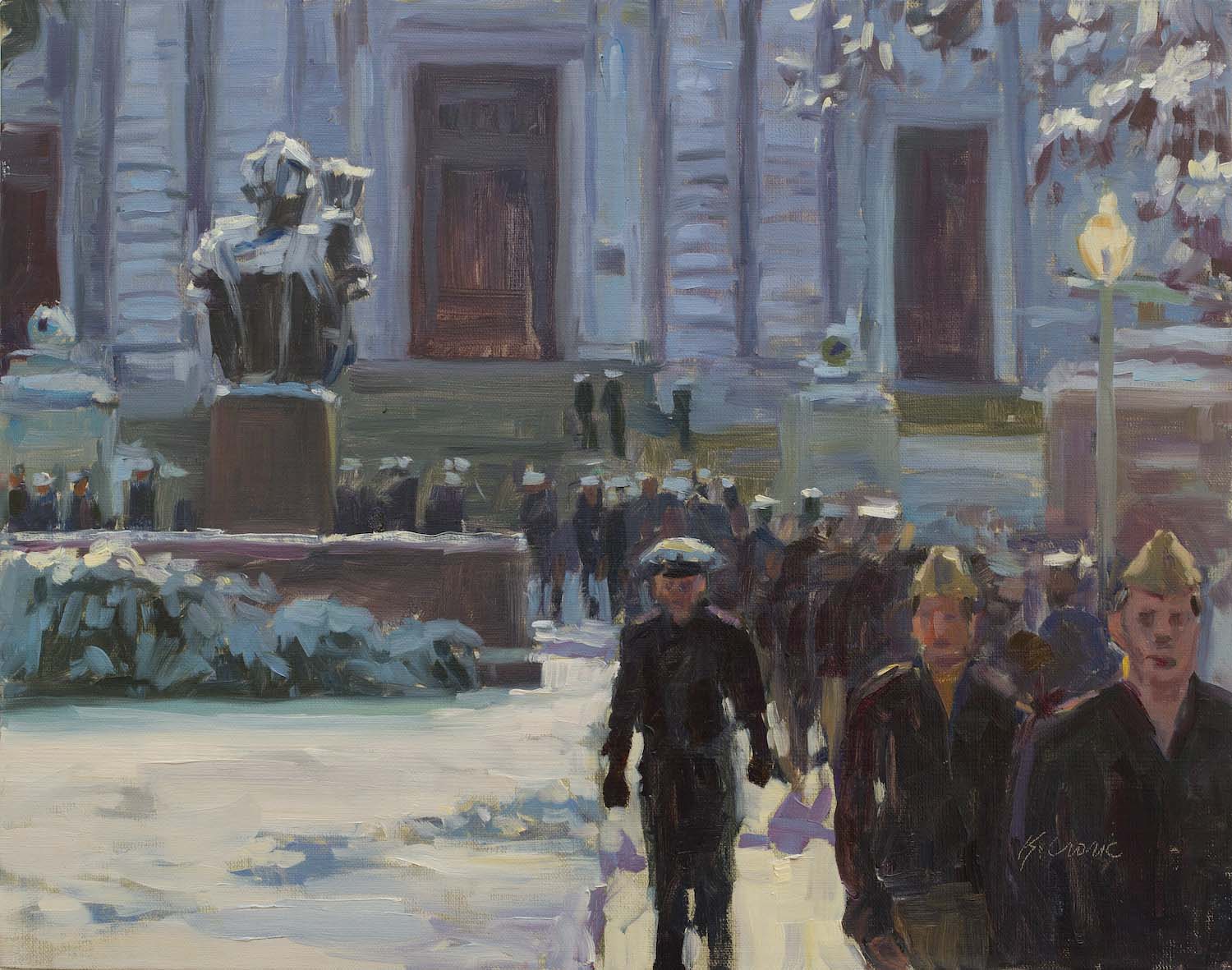 This print is part of the "A Midshipman's Journey" collection, which captures the transformational path of life at the United States Naval Academy, offering a glimpse into the human moments within an institutional process.