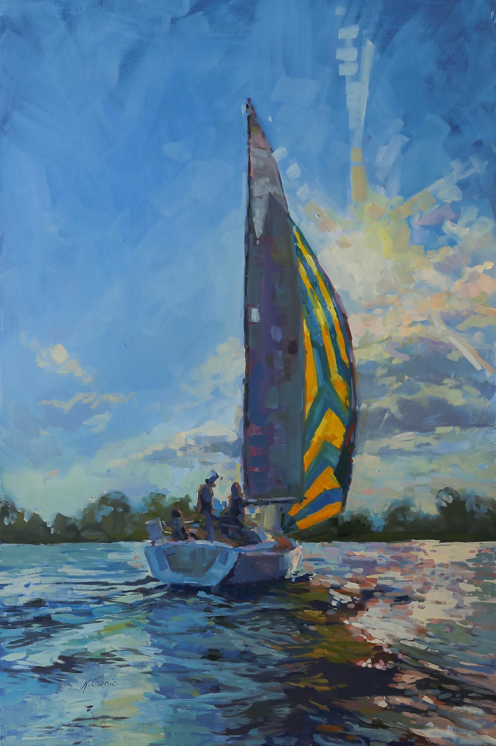 This print is part of the “Spinnaker Skyline” collection, a series of paintings about sailing at the U.S. Naval Academy, completed in 2023.