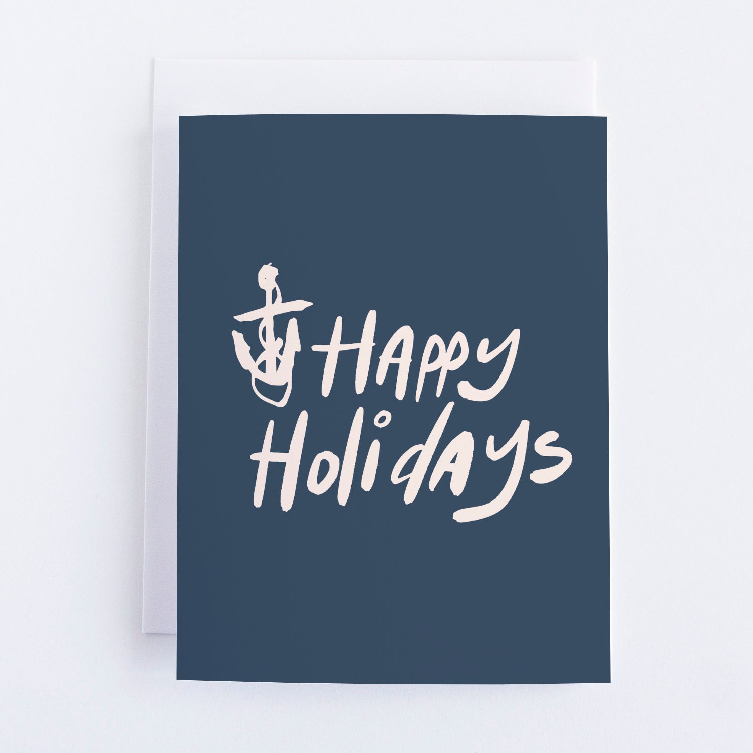 Featuring a hand-drawn anchor alongside a festive holiday message, this card blends tradition with cheer.