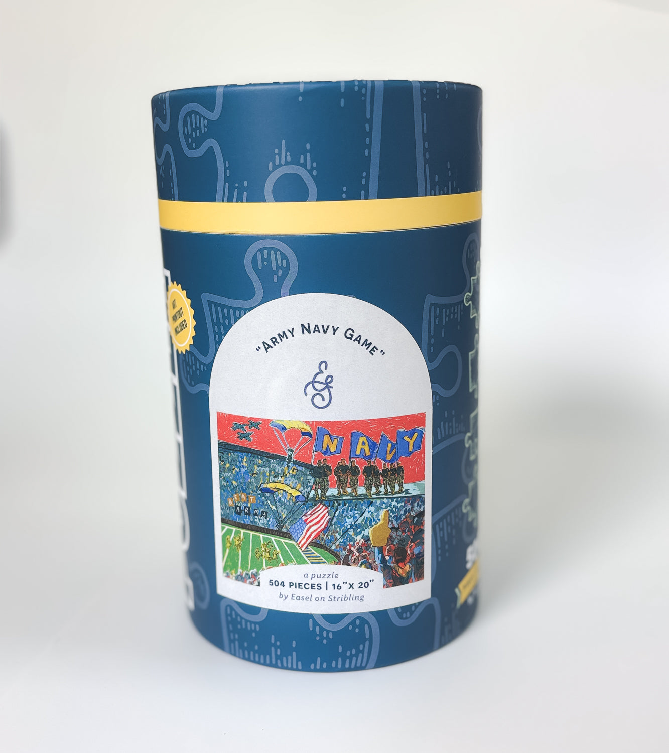Each puzzle comes with a reference art printout to guide you, and it’s packaged in a sturdy tube (perfect for gifting or storing). When finished, your masterpiece measures 16”x20”—perfect for gifting, game-day gatherings, or keeping Navy spirit alive all year long.