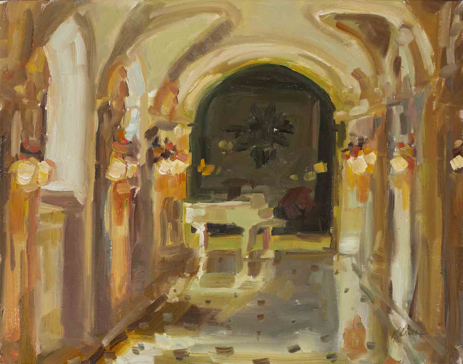 This painting is part of the “Granite and Brass” collection, exploring architectural details of the Yard and completed in 2019.