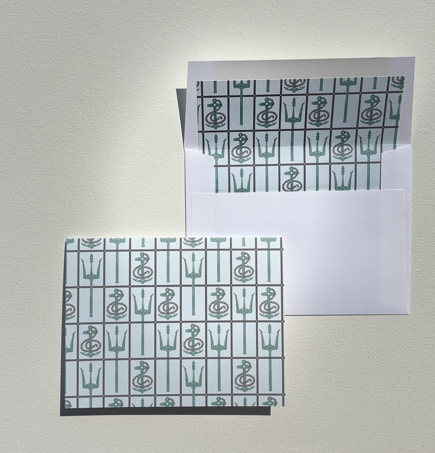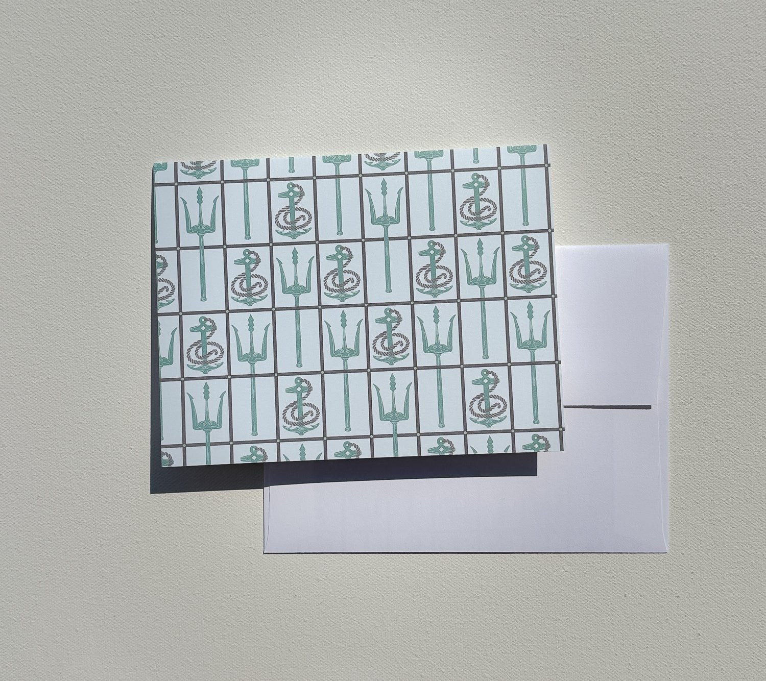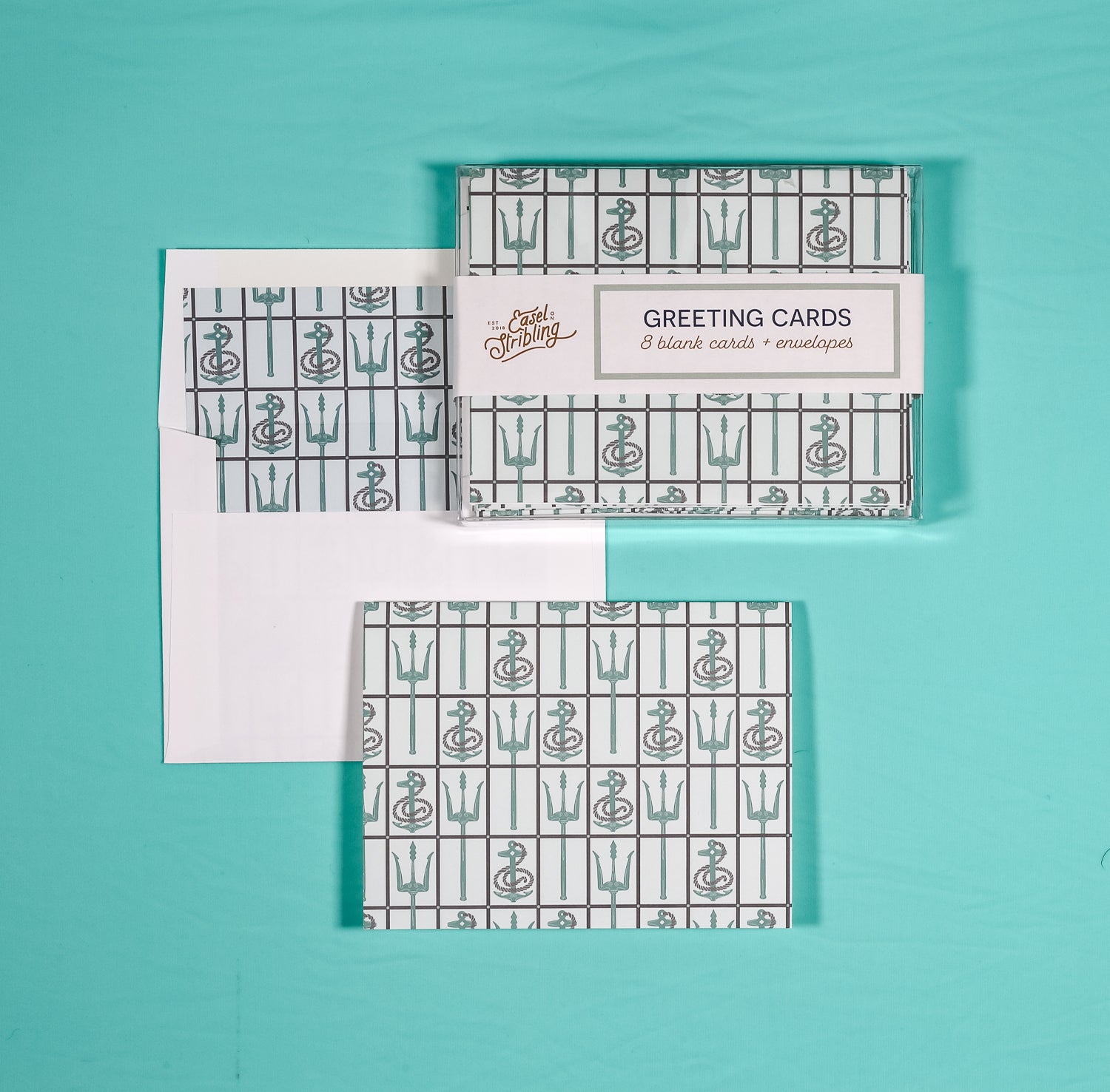 Using a pattern inspired by the iron work of Gate Three at the United States Naval Academy in Annapolis, this "any time" card set is perfect for a variety of occasions.