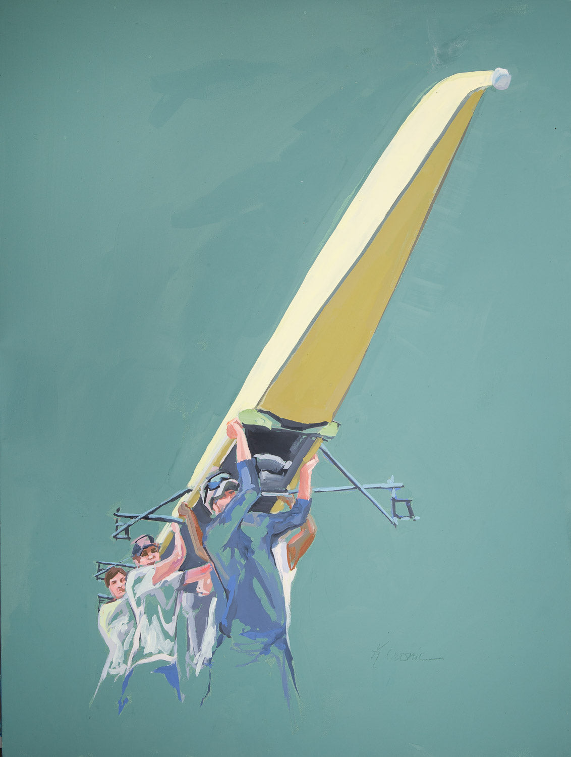“All Eight” is a series of paintings nodding to the dedication of Navy Rowing. From catch to feather to bedding down the shells for the night, the sport requires a synchronized effort of both grit and grace. These paintings aim to explore the familiar moments in the midst of the dedication. Paintings aim to feel anonymous while inviting the viewer into their world. Images of Navy Men’s Heavyweight, Navy Men’s Lightweight, and Navy Women’s Rowing teams.